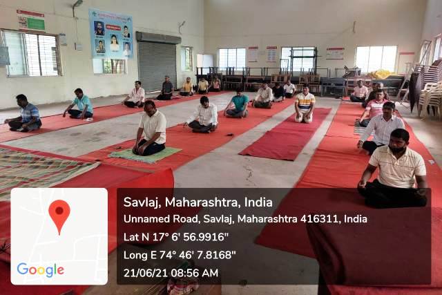 21 जून आंतरराष्ट्रीय योग दिवस साजरा करताना महाविद्यालयीन सेवक