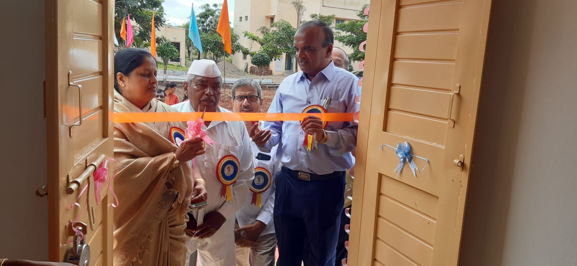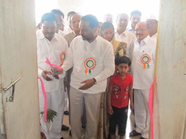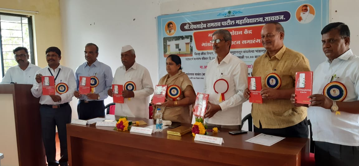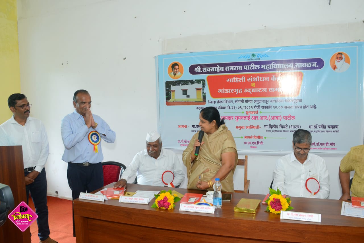 महाविद्यालयीन भांडार गृहाचे उद्घाटन करताना मा. आमदार सुमनताई पाटील व इतर मान्यवर