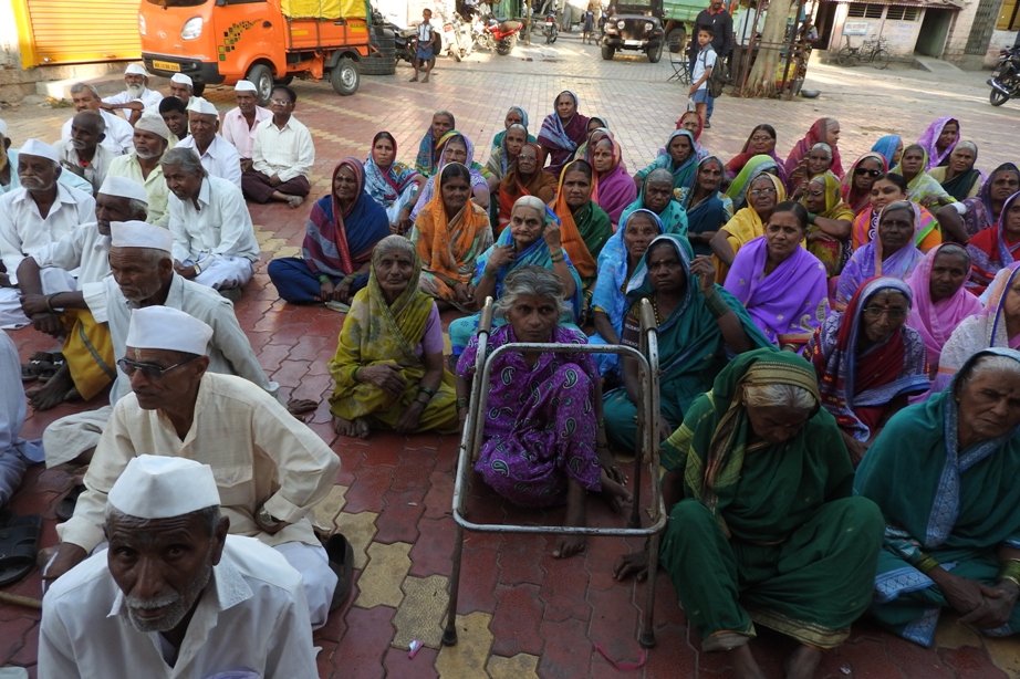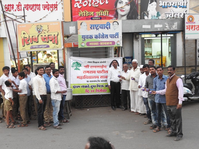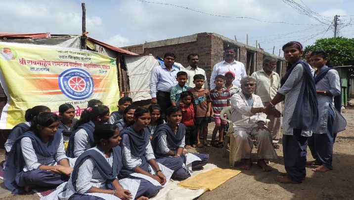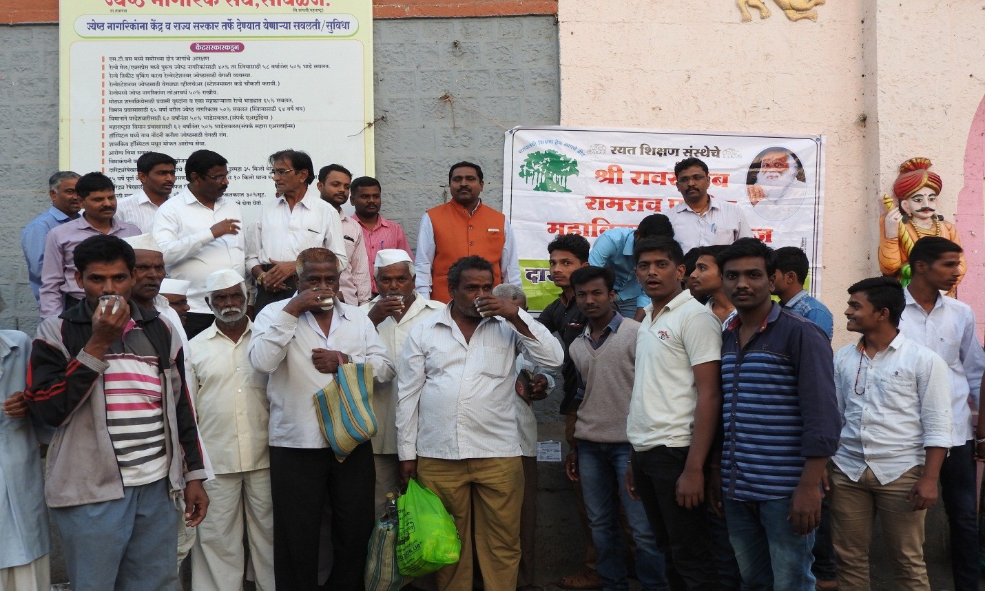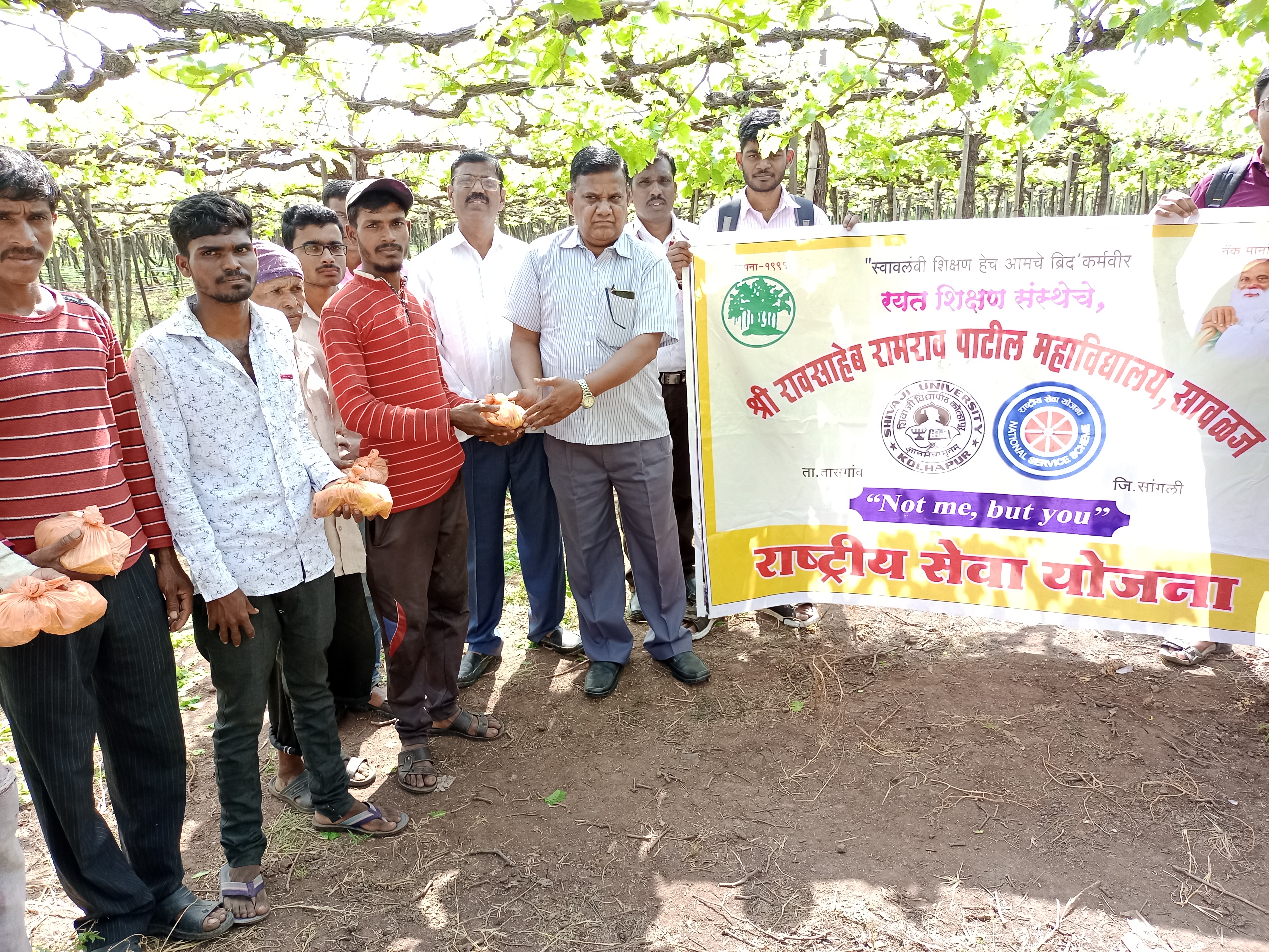 शेत मजुरांना फराळ वाटप करताना मा.प्राचार्य व सेवक वर्ग तसेच विद्यार्थी