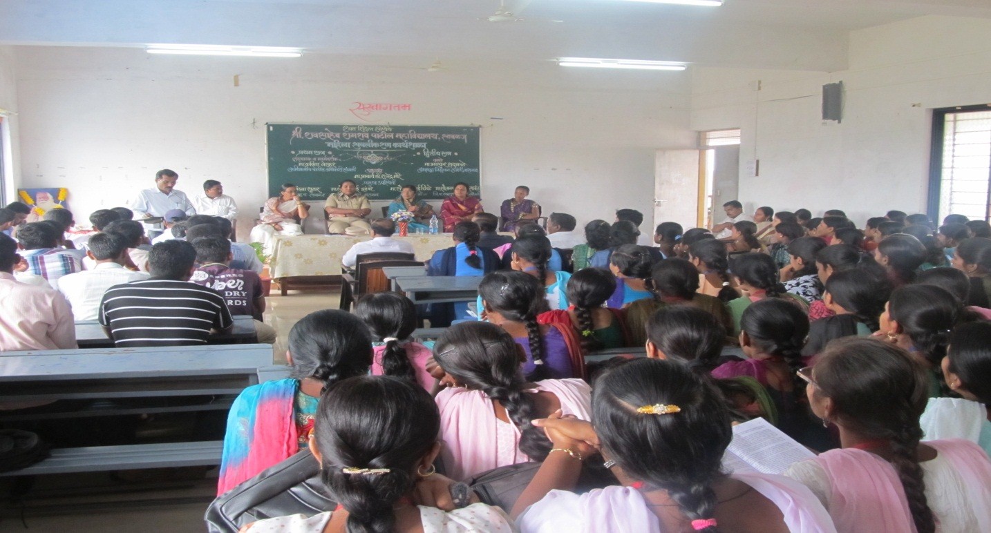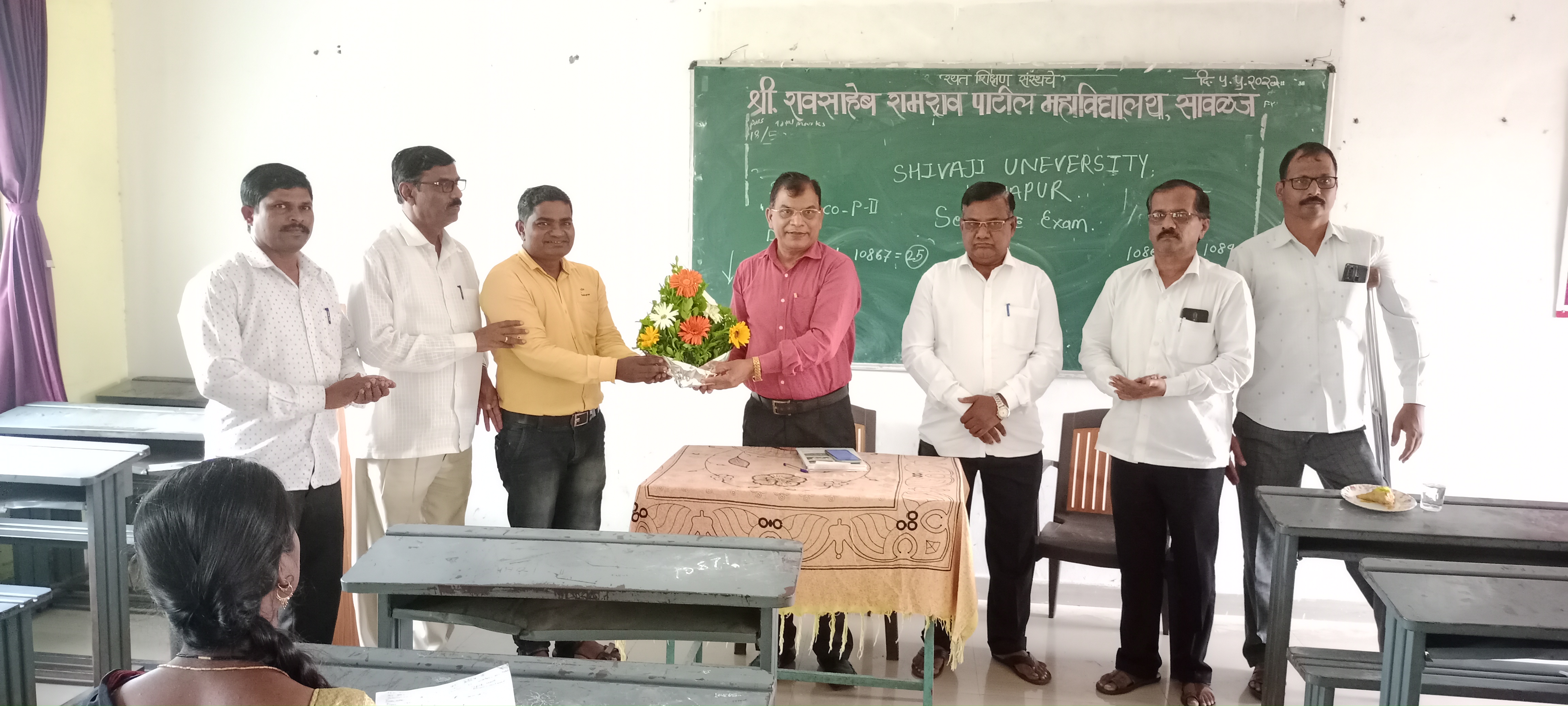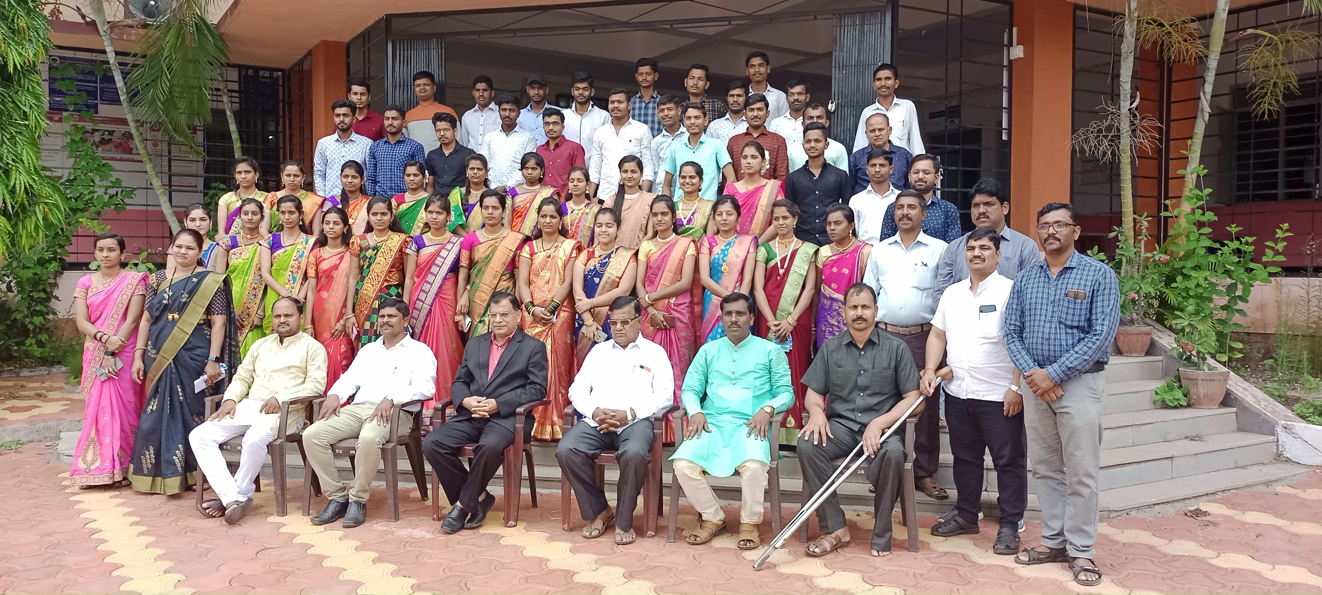 मा. आमदार सुमनताई पाटील व इतर मान्यवरांचे स्वागत करताना महाविद्यालयाचे आदरणीय प्राचार्य डॉ. एल. डी. भोर साहेब