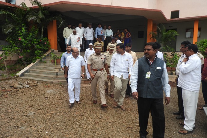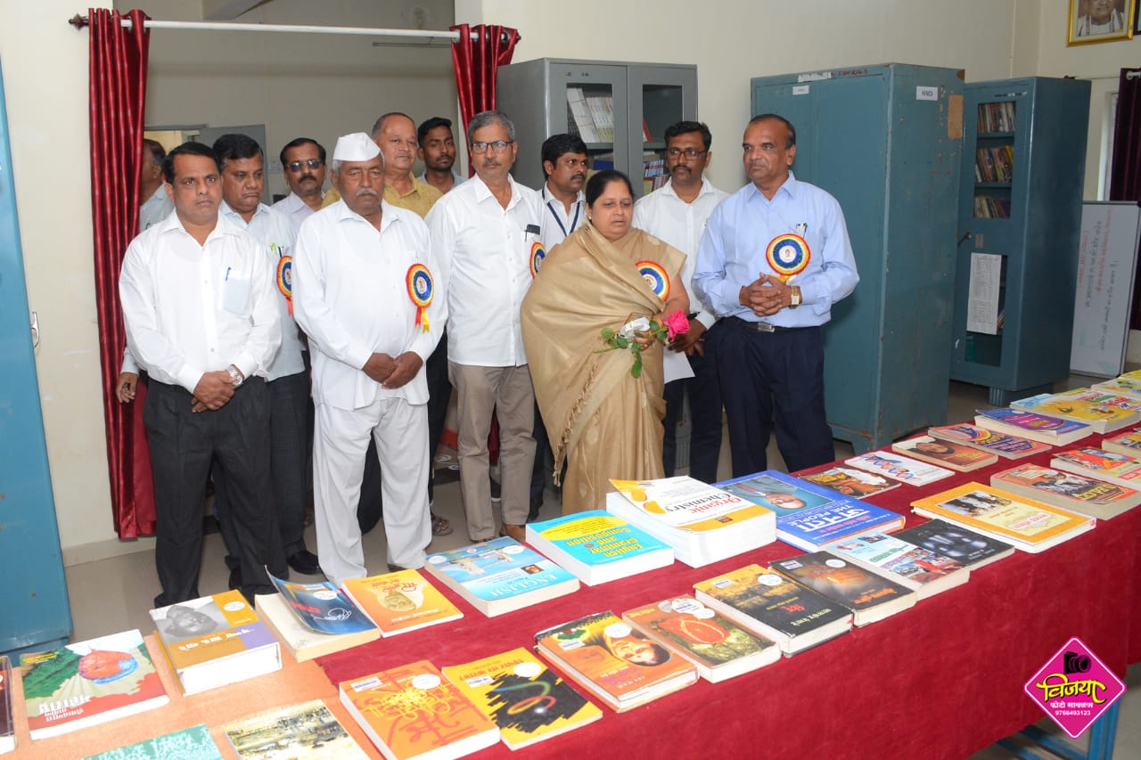 ग्रंथालय नविन वास्तुत स्थलांतर व ग्रंथ प्रदर्शनाची पाहणी करताना मा. आमदार सुमनताई पाटील व इतर मान्यवर