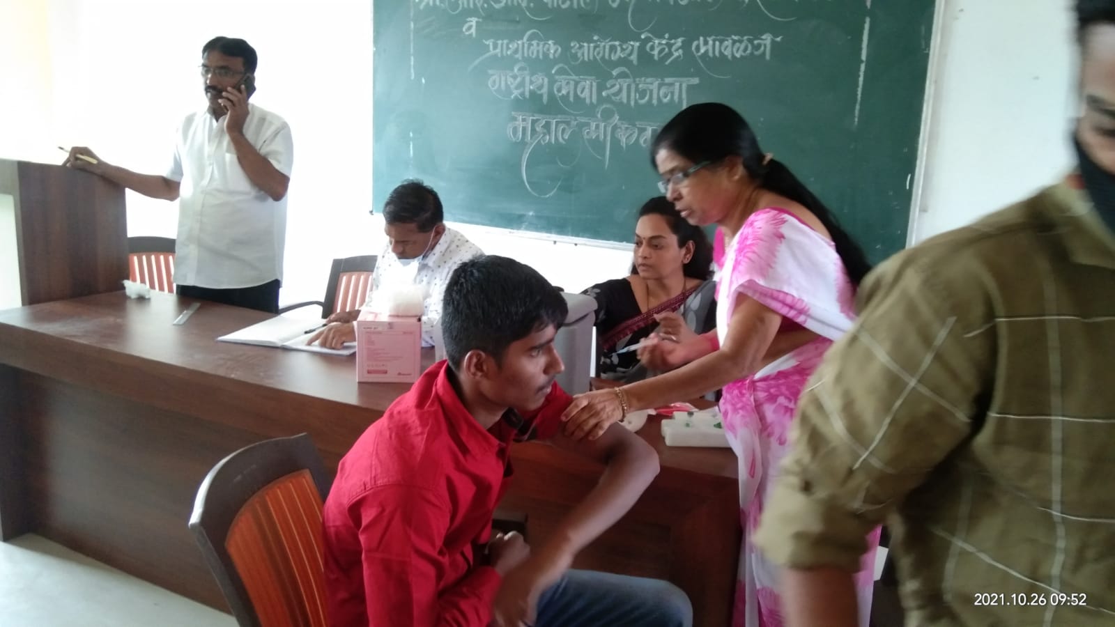 लसीकरण मोहीमेत लास घेताना विद्यार्थी