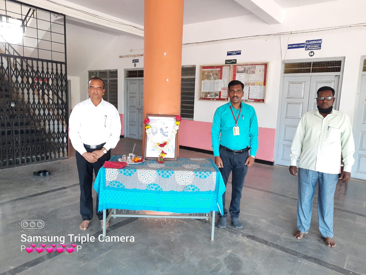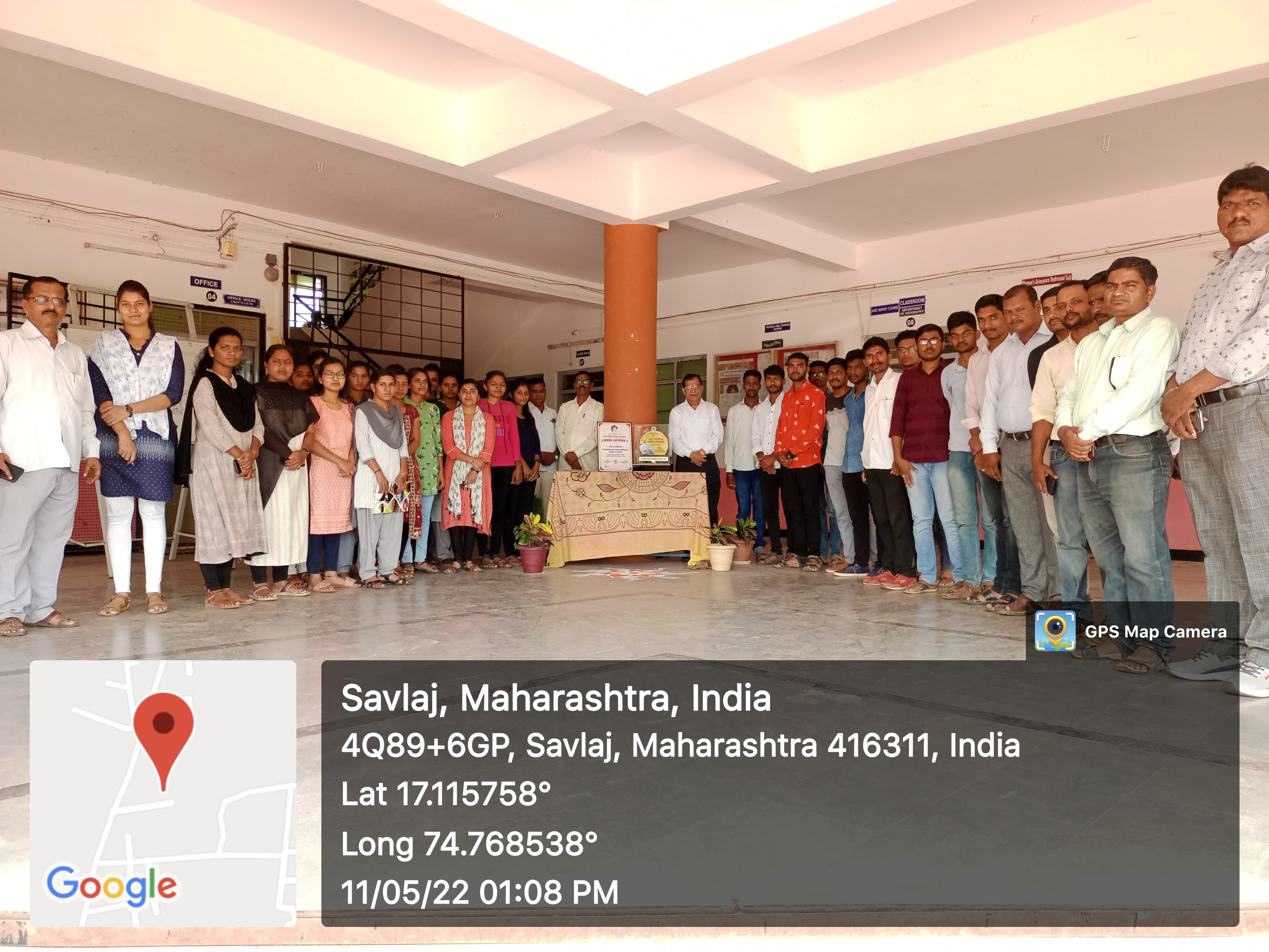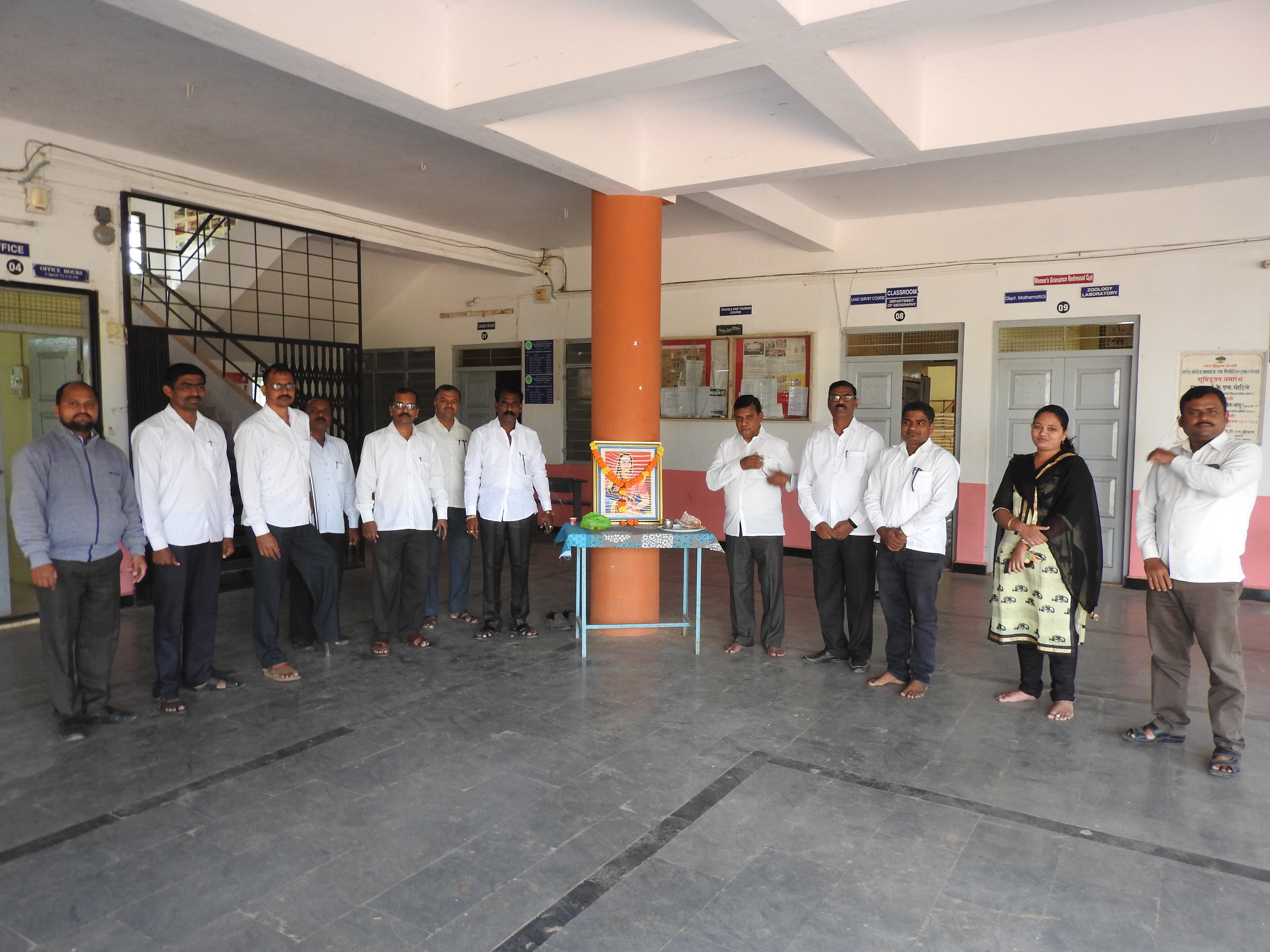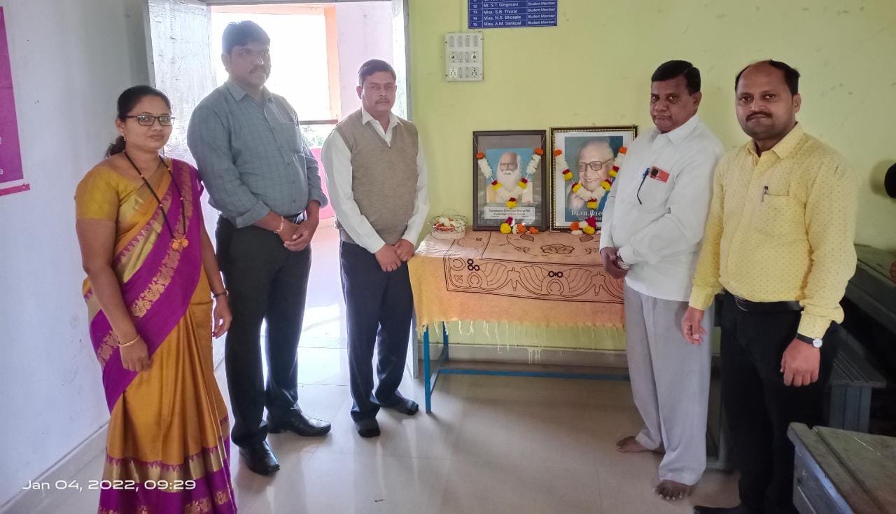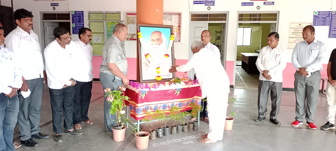 संताजी जगनाडे महाराज जयंती साजरी करताना महाविद्यालीन प्राचार्य, सेवक व विद्यार्थी