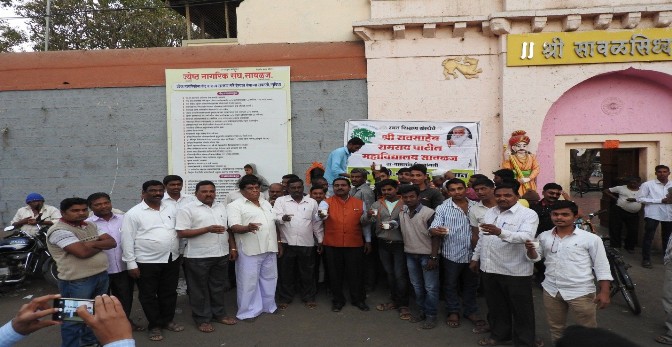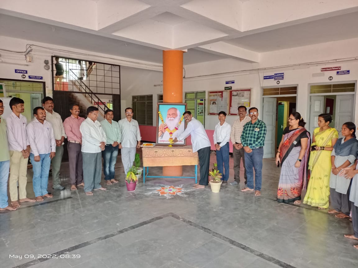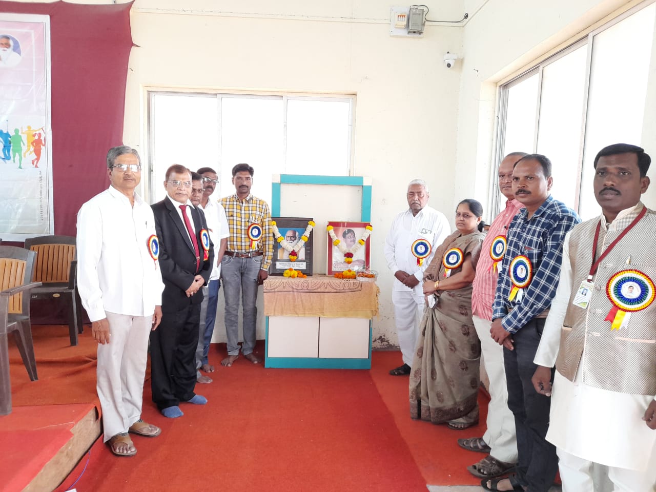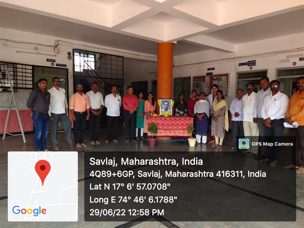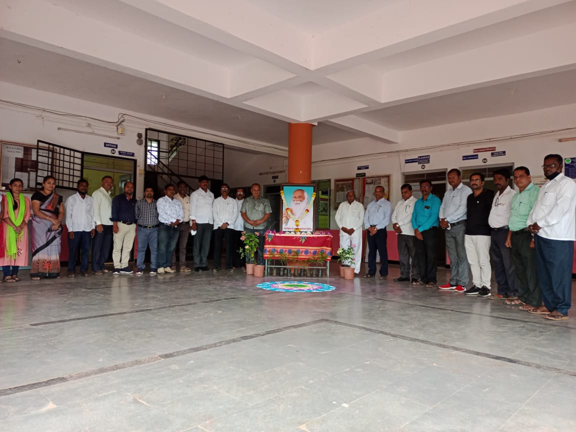 संताजी जगनाडे महाराज जयंती साजरी करताना महाविद्यालीन प्राचार्य, सेवक व विद्यार्थी