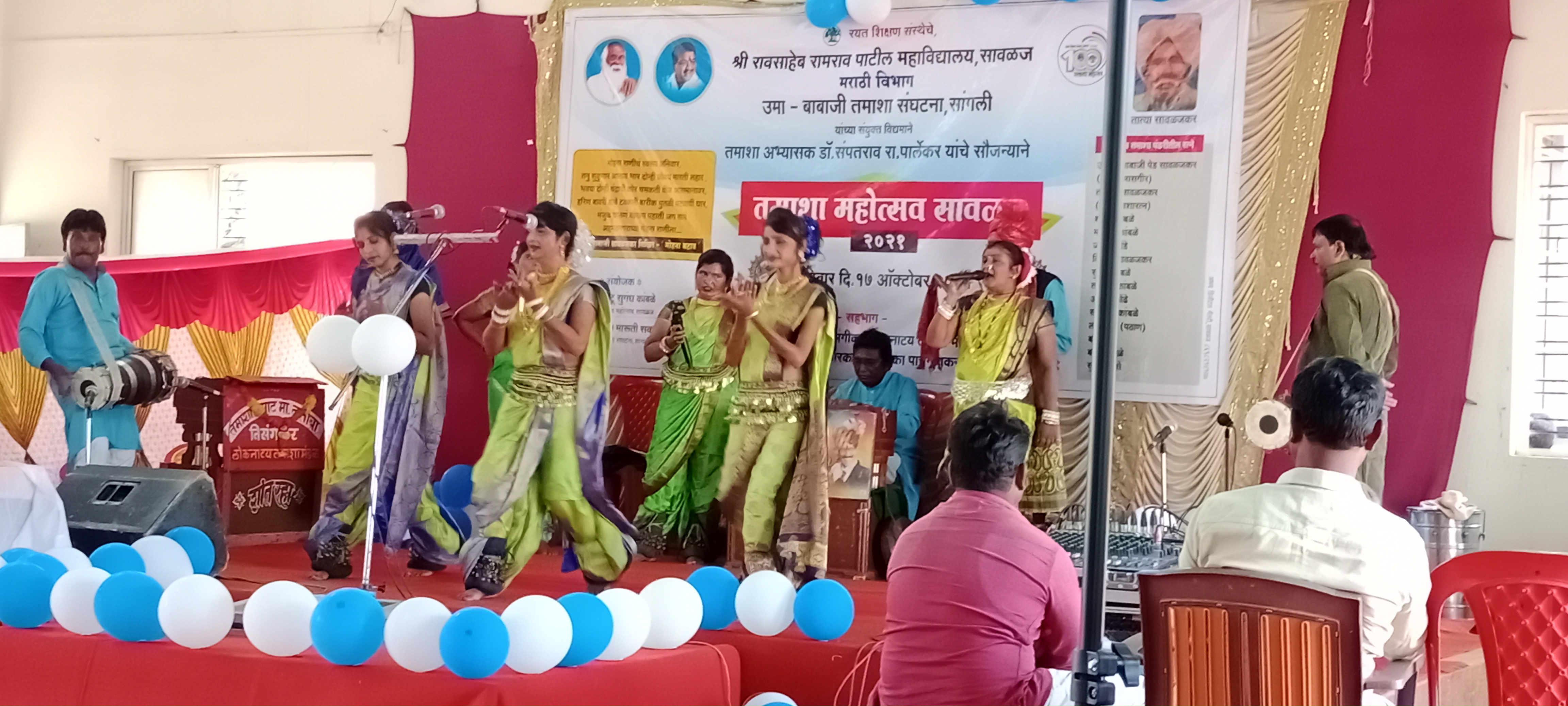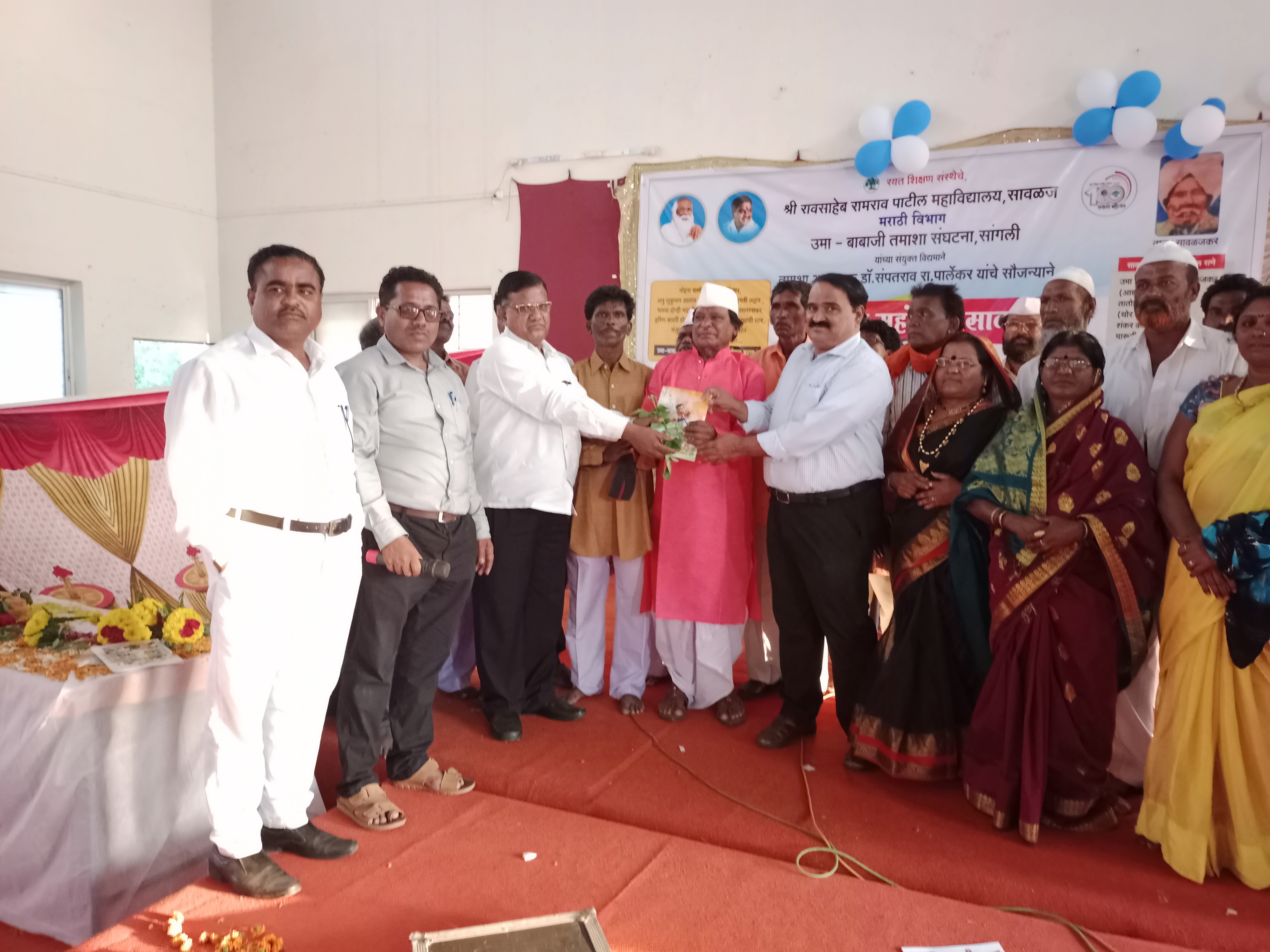 तमाशा कलाकारांचे स्वागत करताना मा.प्राचार्य डॉ.बी.डी.अवघडे व मा.विश्वास पाटील
